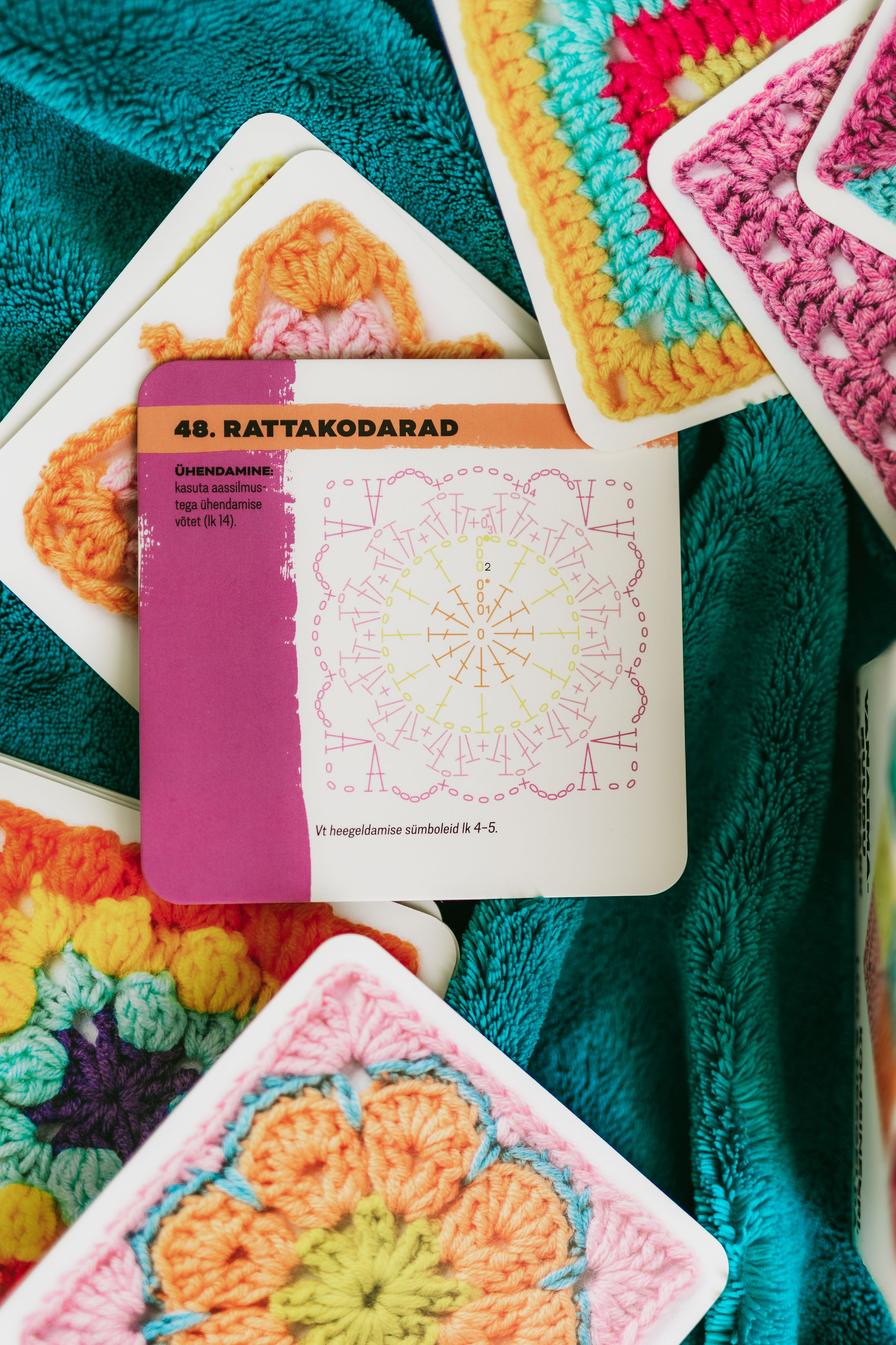 See vahva ja praktiline kaardipakk koondab endas vanaemaruudu heegeldamise põhiõpetuse ja 50 mustrikaarti, mida on hõlbus omavahel kombineerida, et saaksid luua lõpmatu arvu mustri- ja värvikombinatsioone.